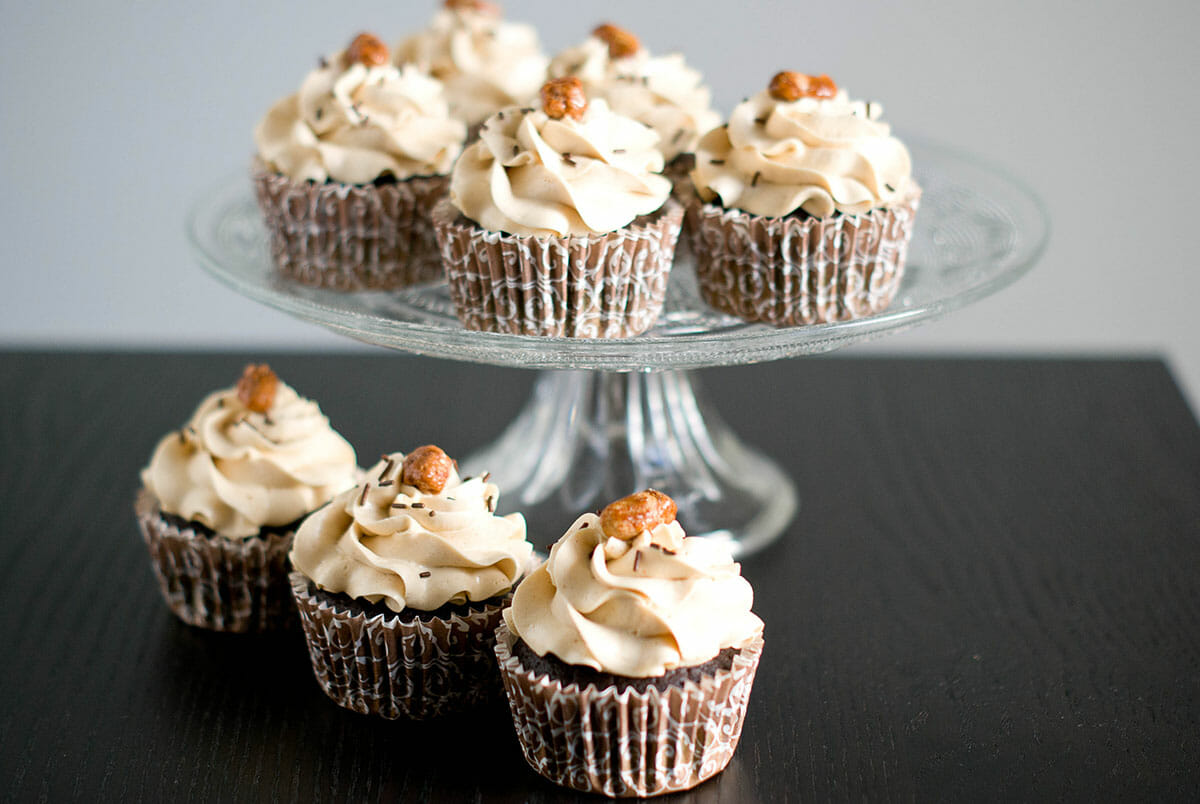 - Garnir ensuite les cupcakes de ce mélange. Vous pouvez, comme moi, les surmonter d'un "chouchou" (cacahuète caramélisée), pour le fun!