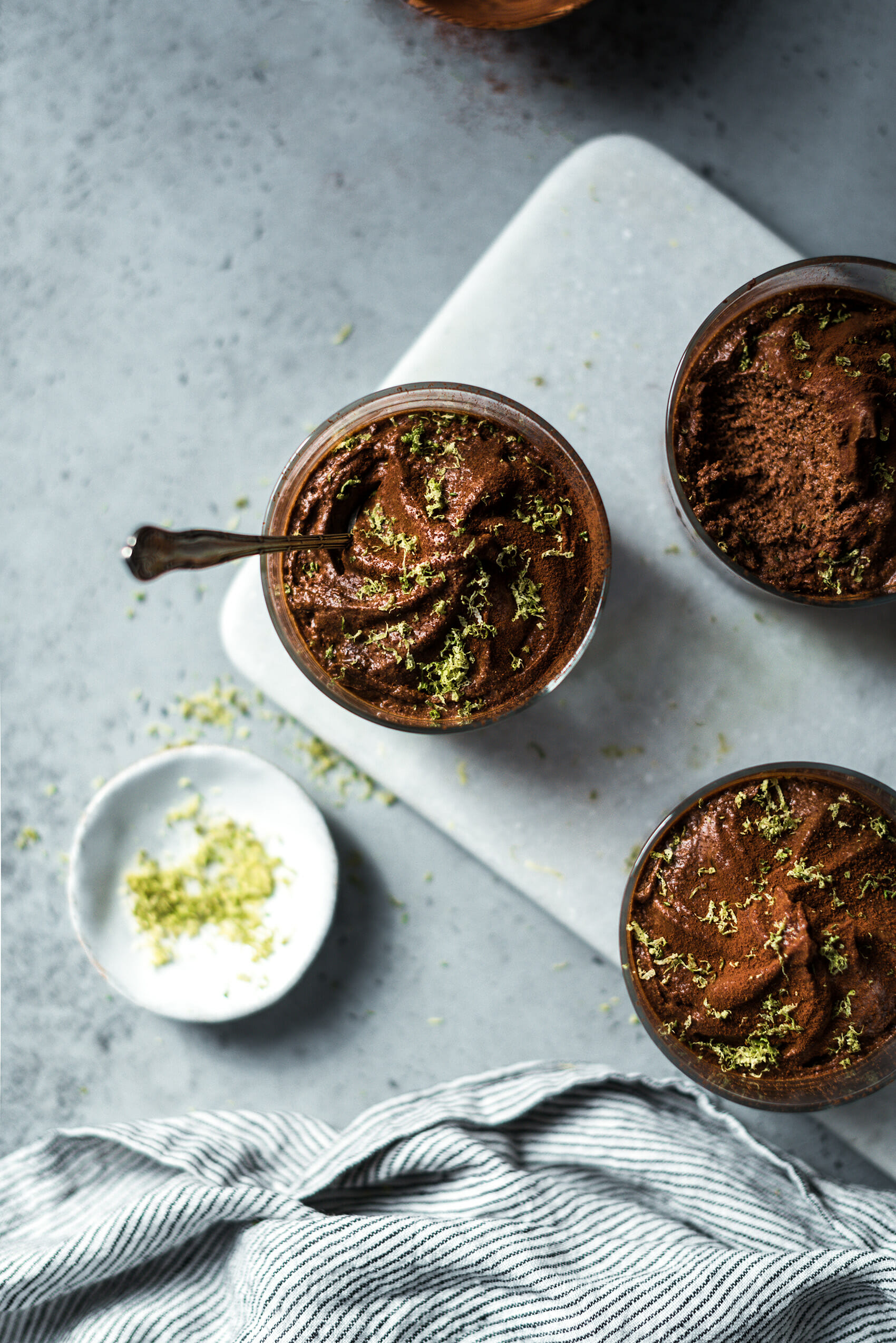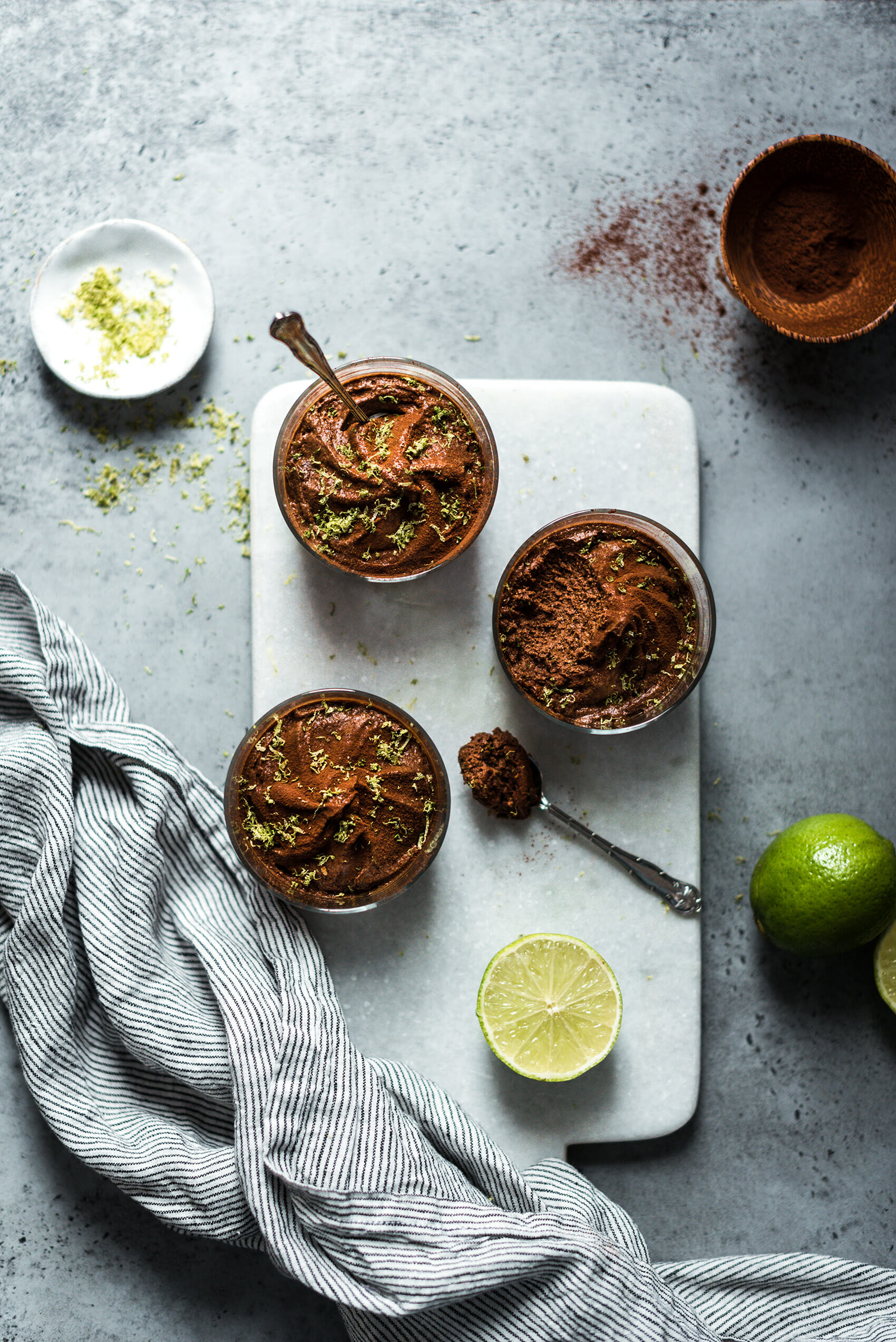 - Saupoudrer de cacao amer et parsemer du zeste de citron vert restant avant de servir.
