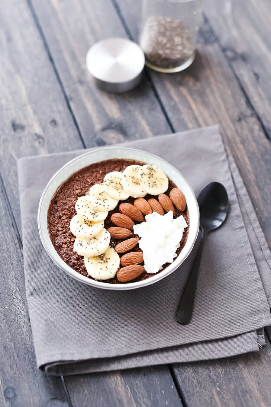 Pour garnir le porridge le lendemain matin, j'adore changer en fonction des saisons et de mes envies. De manière générale, j'opte pour une garniture de fruits : bananes, pommes, poires, fraises, framboises, myrtilles...